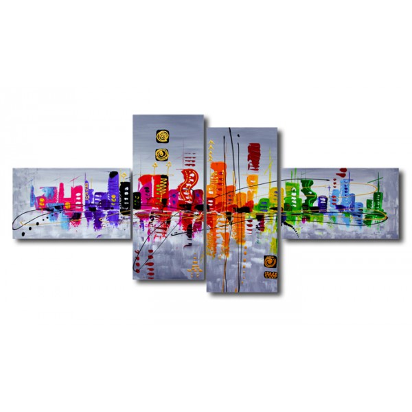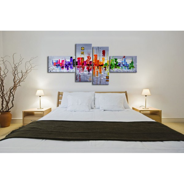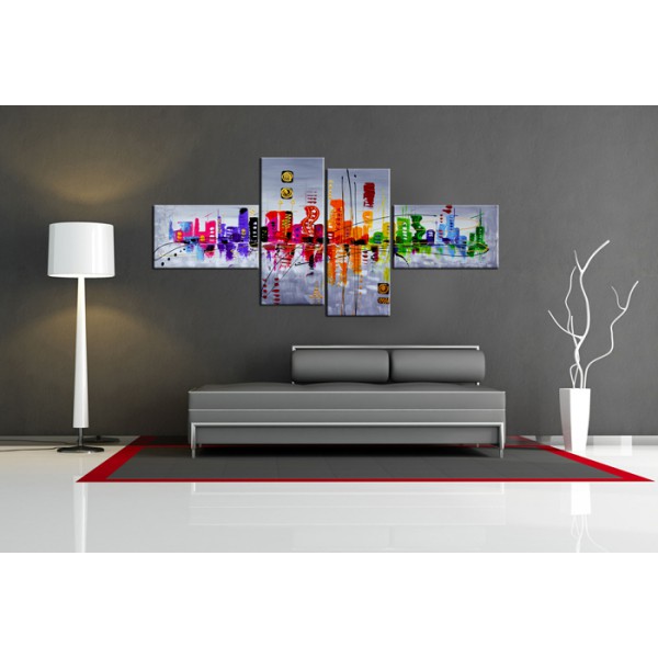 Cuadro lienzo con motivo abstracto ciudad de Nueva York compuesto de 4 partes de medidas 160x70 cm aproximadamente en total, tal y como se ve en las fotografías.
