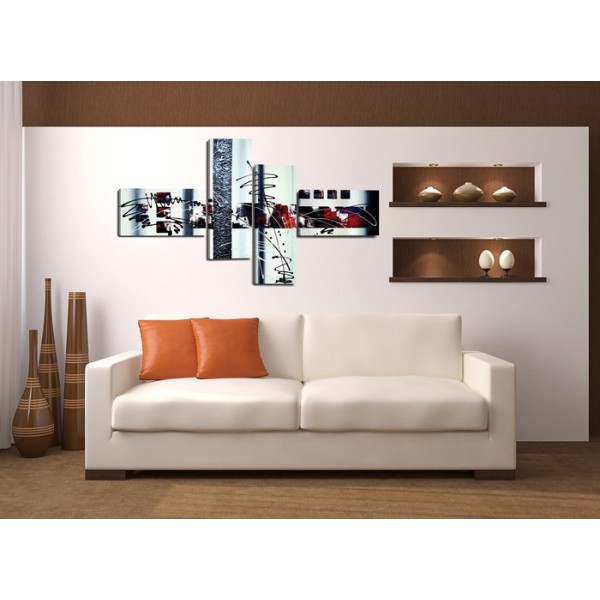 Cuadro lienzo con motivo abstracto compuesto de 4 partes de medidas 160x70 cm aproximadamente en total, tal y como se ve en las fotografías.