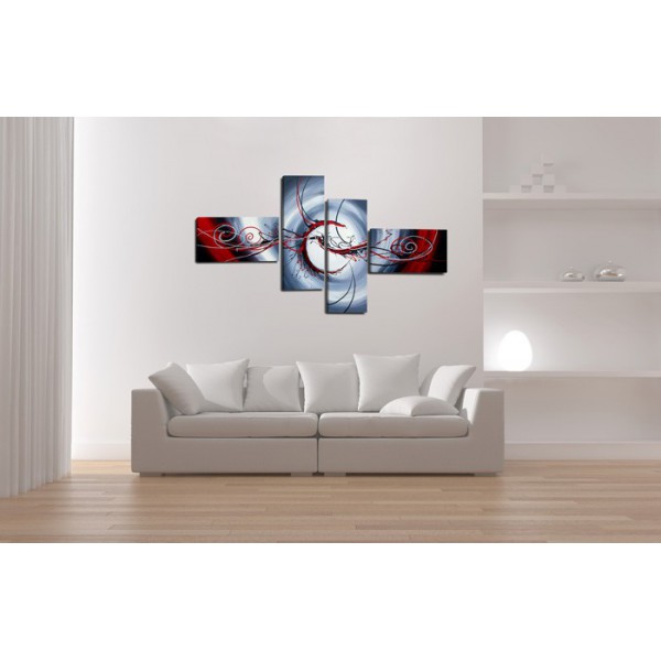 Cuadro lienzo con motivo abstracto compuesto de 4 partes de medidas 160x70 cm aproximadamente en total, tal y como se ve en las fotografías.