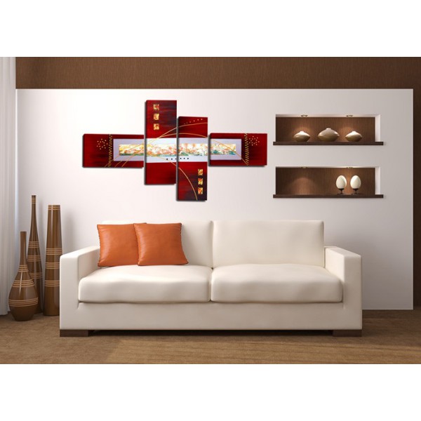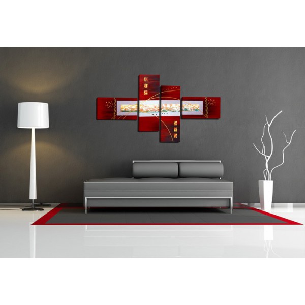 Cuadro lienzo con motivo abstracto compuesto de 4 partes de medidas 160x70 cm aproximadamente en total, tal y como se ve en las fotografías.
