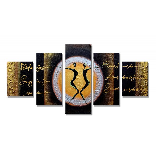 Cuadro lienzo con motivo africa culturas compuesto de 5 partes de medidas 160x80 cm aproximadamente en total, tal y como se ve en las fotografías.