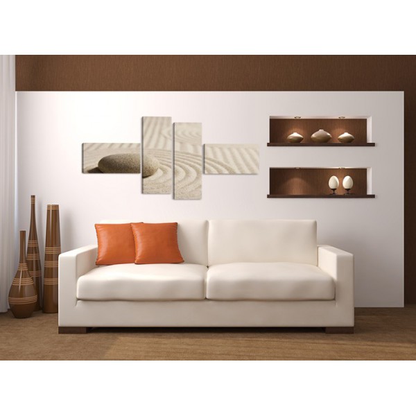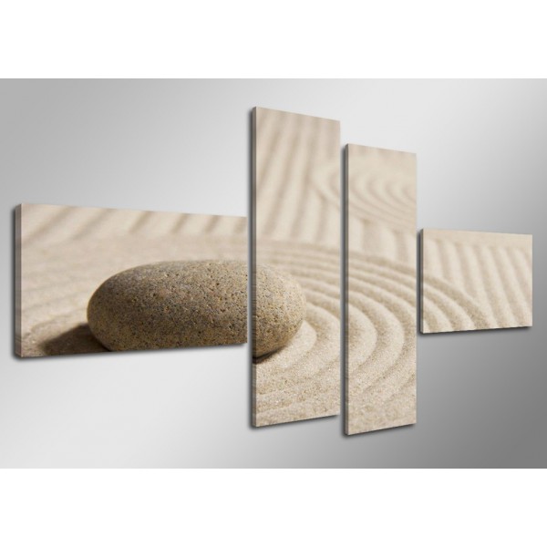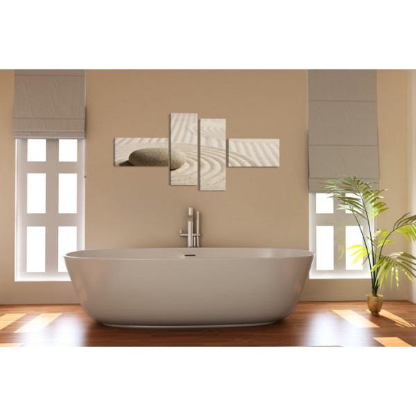 Cuadro lienzo con motivo spa compuesto de 4 partes de medidas 160x70 cm aproximadamente en total, tal y como se ve en las fotografías. Impresión sobre lienzo de altísima calidad. Grosor del bastidor 2 cm. El artículo es nuevo, en su embalaje original, y puede colgarse directamente sin necesidad de ningún marco.
