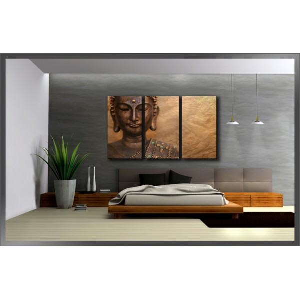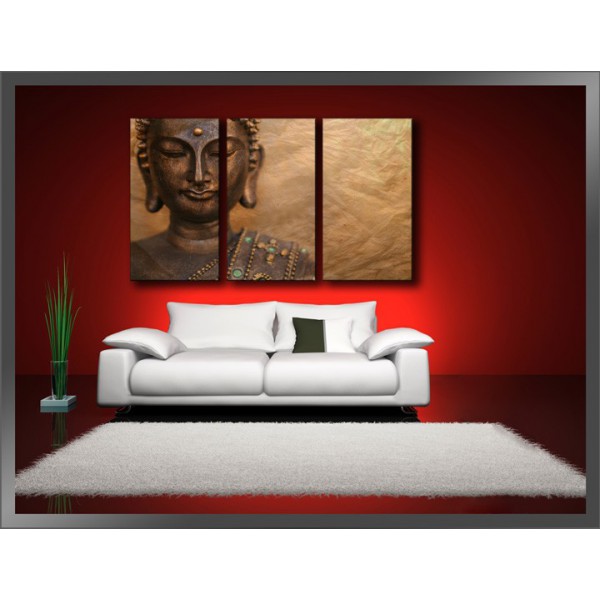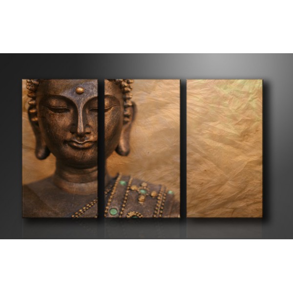 Impresionante cuadro con motivo Buda tríptico de 160 x 90 cm en total.