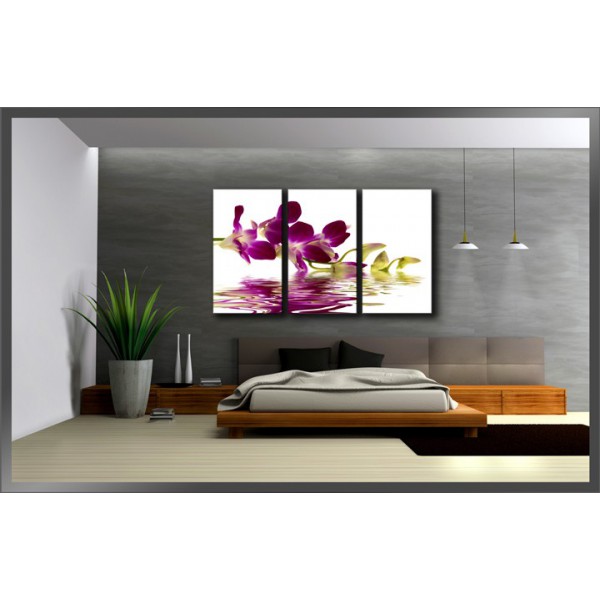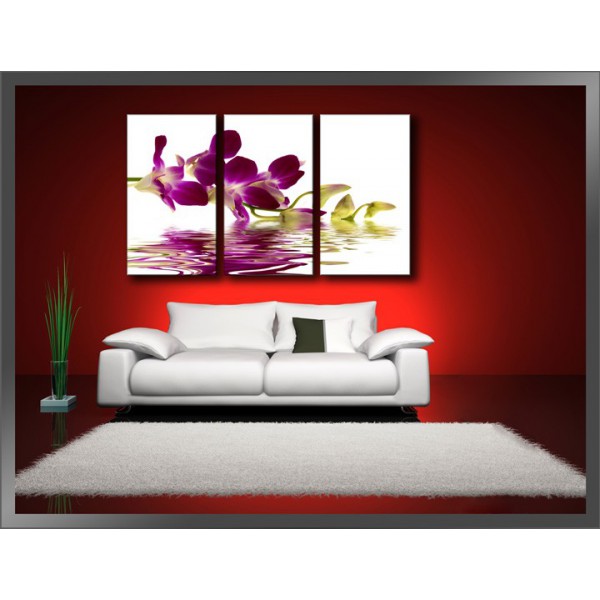 Cuadro lienzo con motivo floral compuesto de 3 partes de medidas 160x90 cm aproximadamente en total, tal y como se ve en las fotografías.