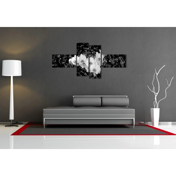 Cuadro lienzo con motivo floral compuesto de 4 partes de medidas 160x70 cm aproximadamente en total, tal y como se ve en las fotografías.