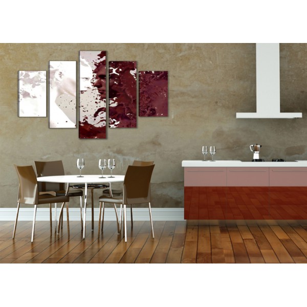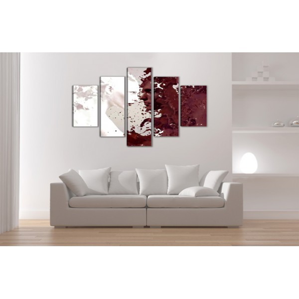 Cuadro lienzo con motivo moderno compuesto de 5 partes de medidas 160x80 cm aproximadamente en total, tal y como se ve en las fotografías.