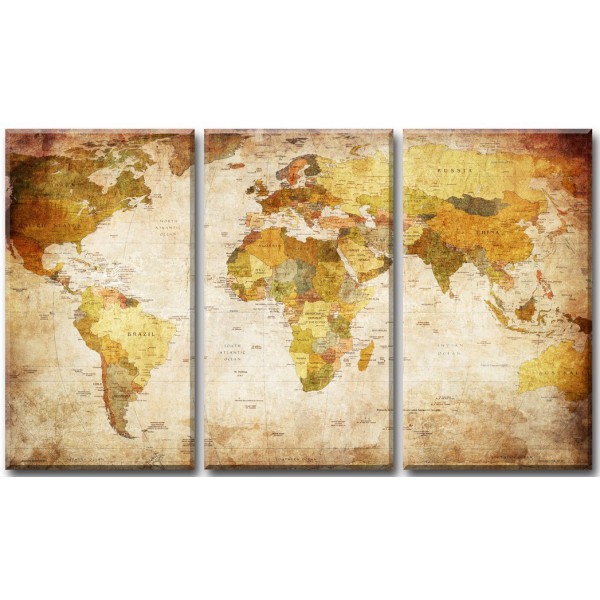 Impresionante cuadro con motivo Mapa del Mundo tríptico de 160x90 cm en total.