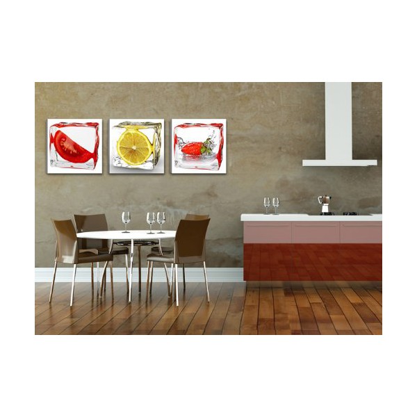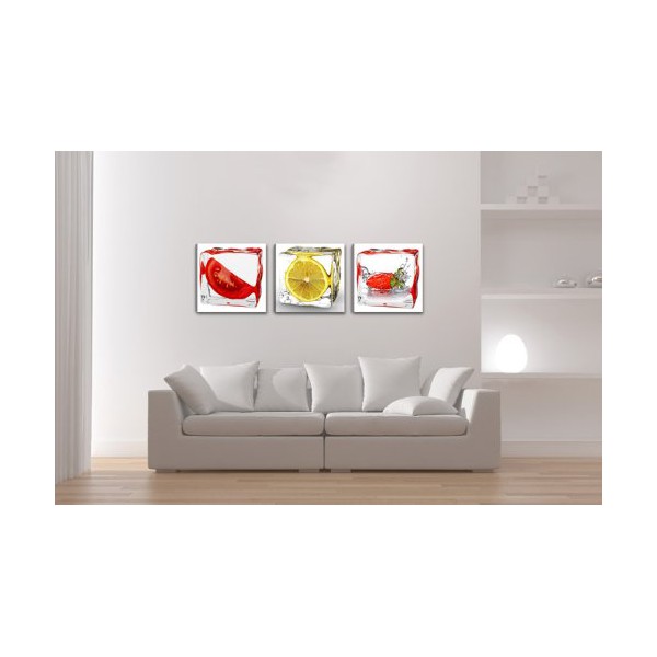 Cuadro lienzo con motivo Frutas compuesto de 3 partes de medidas 150x50 cm aproximadamente en total, tal y como se ve en las fotografías.