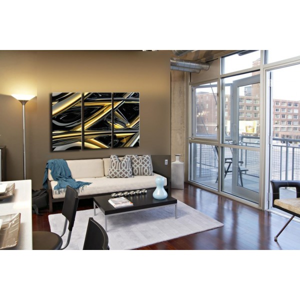 Impresionante cuadro con motivo moderno triptico de 130x80 cm en total.
