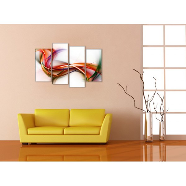 Cuadro lienzo con motivo moderno compuesto de 4 partes de medidas 130x80 cm aproximadamente en total, tal y como se ve en las fotografías.