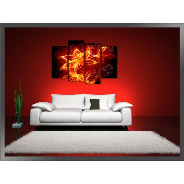 Cuadro lienzo con motivo moderno compuesto de 4 partes de medidas 130x80 cm aproximadamente en total, tal y como se ve en las fotografías.