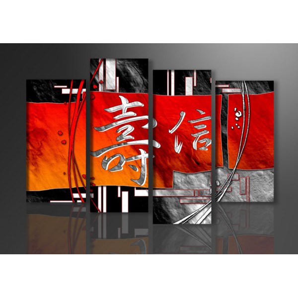 Impresionante cuadro con motivo Oriente en cuatro partes de 130x80 cm en total.
