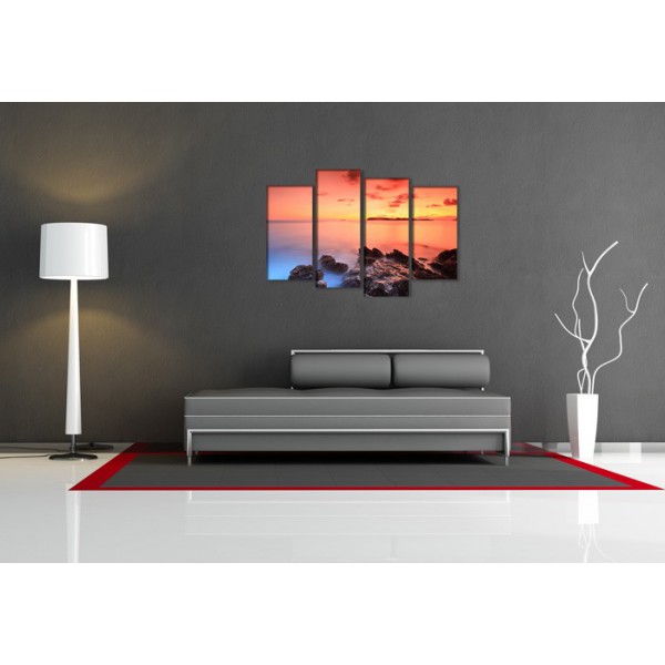 Cuadro lienzo con motivo paisajístico compuesto de 4 partes de medidas 130x80 cm aproximadamente en total, tal y como se ve en las fotografías. Impresión sobre lienzo de altísima calidad. Grosor del bastidor 2 cm. El artículo es nuevo, en su embalaje original, y puede colgarse directamente sin necesidad de ningún marco.
