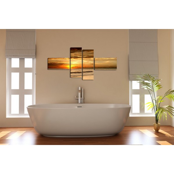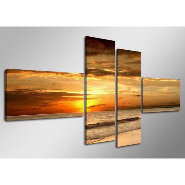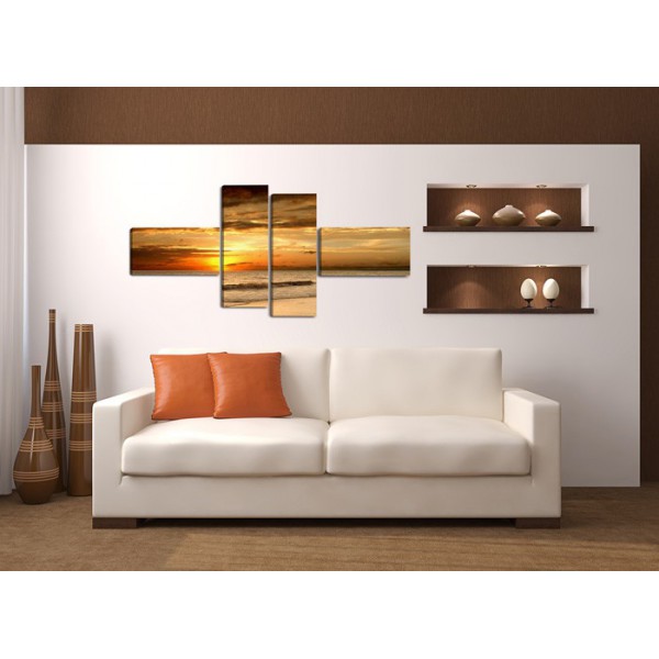 Cuadro lienzo con motivo paisaje compuesto de 4 partes de medidas 160x70 cm aproximadamente en total, tal y como se ve en las fotografías. Impresión sobre lienzo de altísima calidad. Grosor del bastidor 2 cm. El artículo es nuevo, en su embalaje original, y puede colgarse directamente sin necesidad de ningún marco.