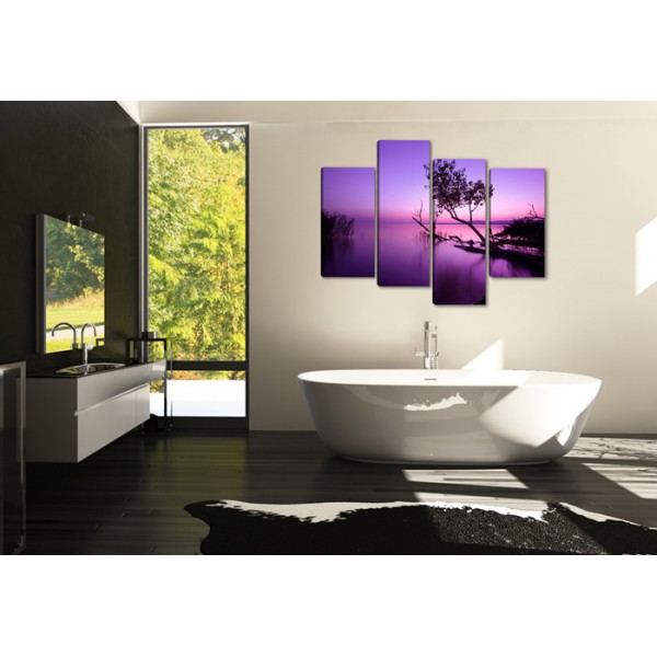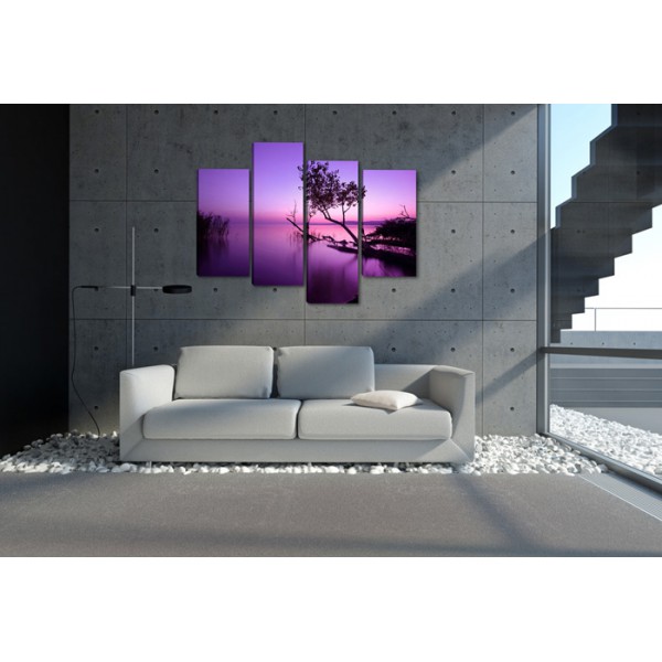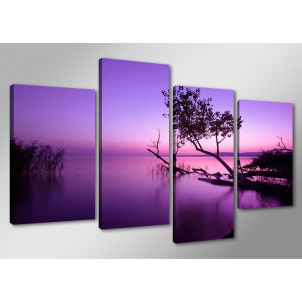 Cuadro lienzo con motivo paisajistico compuesto de 4 partes de medidas 130x80 cm aproximadamente en total, tal y como se ve en las fotografías. Impresión sobre lienzo de altísima calidad. Grosor del bastidor 2 cm. El artículo es nuevo, en su embalaje original, y puede colgarse directamente sin necesidad de ningún marco.