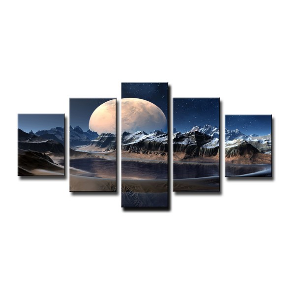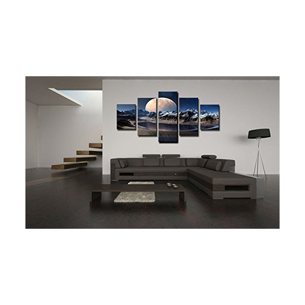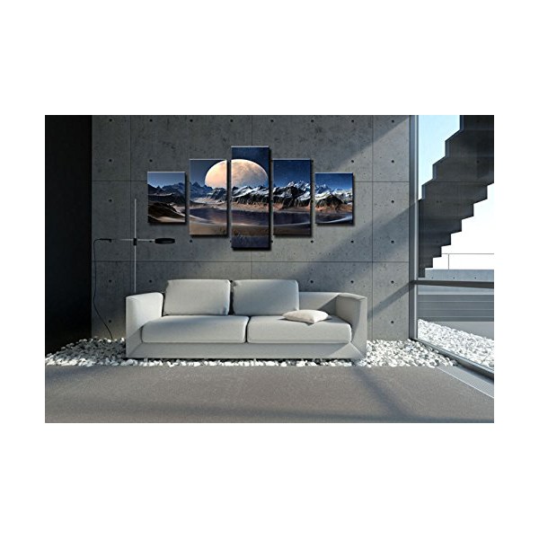 Cuadro lienzo con motivo paisajístico compuesto de 5 partes de medidas 160x80 cm aproximadamente en total, tal y como se ve en las fotografías. Impresión sobre lienzo de altísima calidad. Grosor del bastidor 2 cm. El artículo es nuevo, en su embalaje original, y puede colgarse directamente sin necesidad de ningún marco.